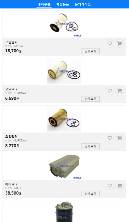 - 독일 말레 (MAHLE)필터류 (캐빈, 오일, 에어필터, 연료 등)