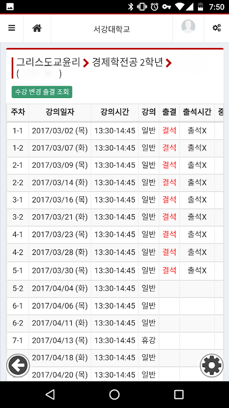 Aplikasi profesor elektronik kehadiran Sogang University. Universiti Sogang, Universiti Sogang, Universiti Sogang, Kehadiran Elektronik