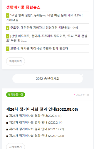 Aplikasi halaman utama pengenalan Persatuan Sisa Perbandaran Seoul dan aplikasi syarikat ahli.