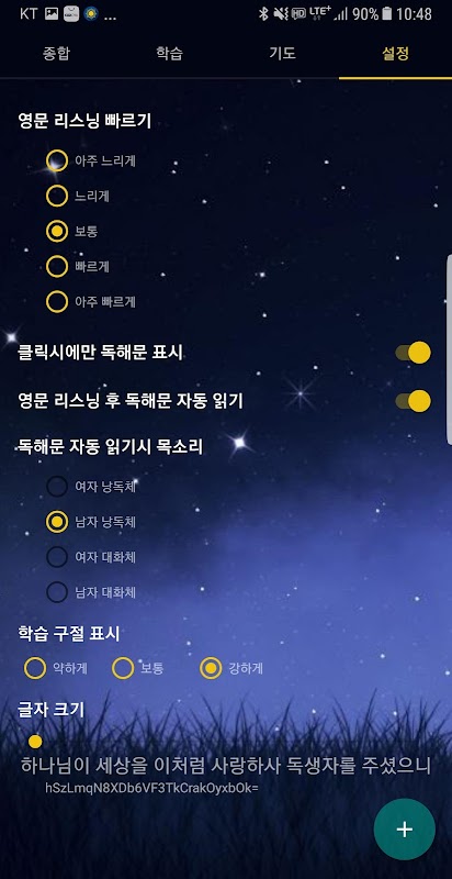 영문으로 성경책을 읽어주고 바로바로 번역본을 제공하니 영어의 어휘력과 직독직해능력 그리고 리스닝 능력을 한번에 키울 수 있는 영어 공부를 위한 1석 4조의 최고의 앱입니다.