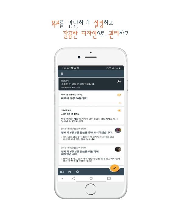 성경읽는 목표를 세우고 앱에서 관리합니다.