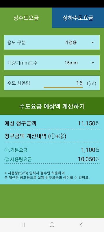 수도요금계산기 : 수도세계산기 1.5