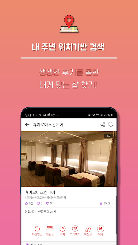 Maklumat APK 스킨스 - 내 주변 피부관리 샵, 태닝샵 가격 및 위치 비교