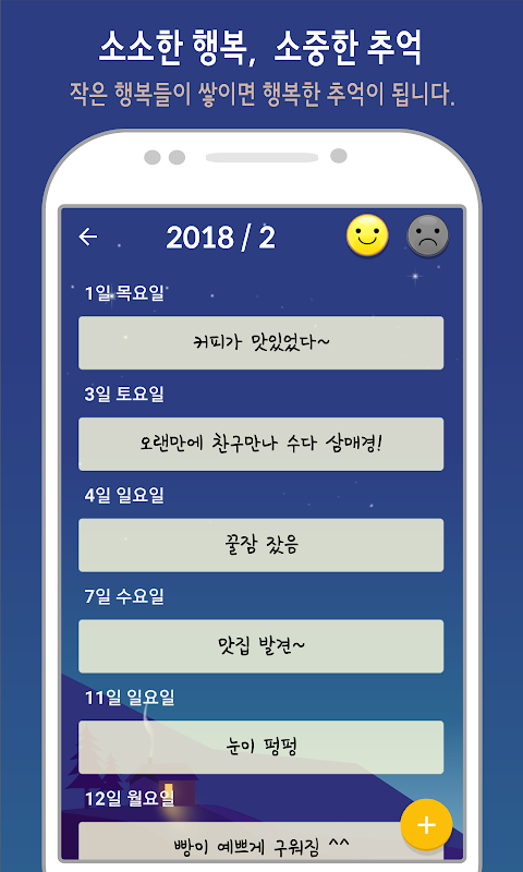 매일 좋았던 일과 안 좋았던 일을 간편하게 기록할 수 있습니다.