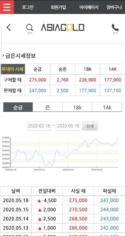 Versi lama 아시아골드 오늘의 금시세 은시세 제공