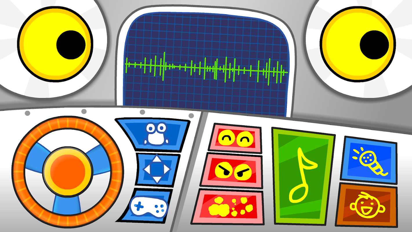 버튼을 눌러 알버트의 눈 색깔, 배경음도 바꾸고 멋지게 조종할 수 있어요. 스마트폰에 대고 말을 하면 알버트가 말도 따라 해요. 다기능 알버트 콘트롤러!