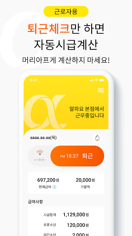 알파요 - 알바 퇴근즉시 시급확인, 명세서, 근로계약서 4.0.4