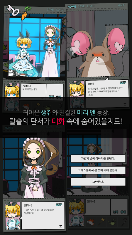 수상해 보이는 곳을 터치해서 조사하거나 아이템을 모아서 앨리스를 탈출시키세요.