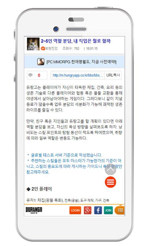 야생의 땅 듀랑고 통신 (뉴스, 커뮤니티) 어플 하나로 받아보세요!
