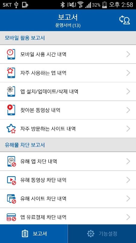 자녀의 일일 스마트폰 사용시간은 물론, 앱 사용내역과 설치/삭제내역, 인터넷사이트 방문내역 등을 한 번에 확인하고 자녀에게 올바른 스마트폰 사용법을 지도할 수 있습니다.