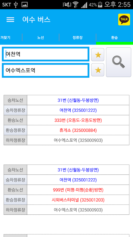 Permohonan ini menyediakan maklumat Yeosu ketibaan bas.