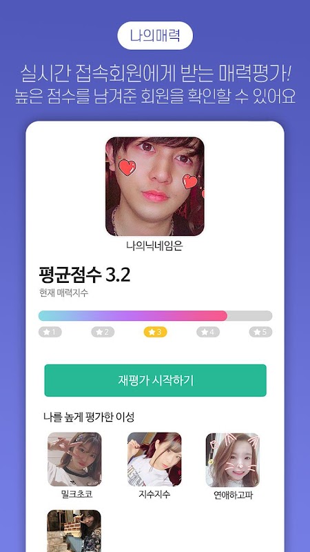또한 상대 이성의 프로필을 보고 직접 매력을 평가해볼 수 있습니다.