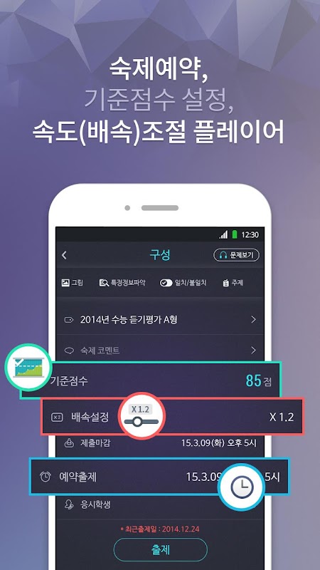 지니어스에서는 숙제출제 시 0.5배속 부터 2배속까지 선생님이 원하는 속도로 숙제를 출제할 수 있고,