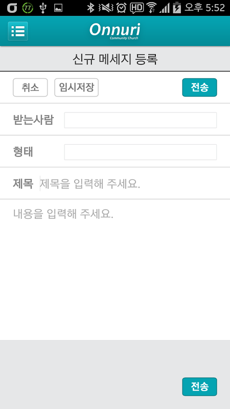 3. 전송된 메시지는 온누리교회앱에서 로그인한 성도 중 관련된 분들은 동시에 수신됨