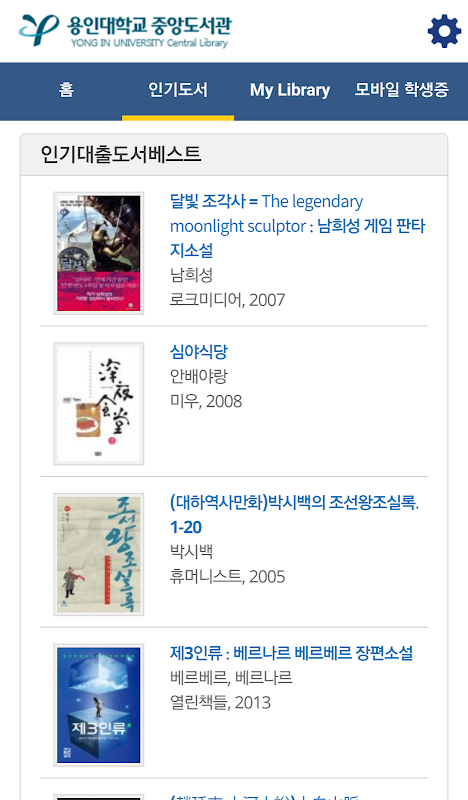 Aplikasi Perpustakaan Pusat Universiti Yongin.