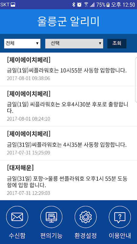 Ini adalah perkhidmatan yang menyediakan maklumat masa nyata yang berkaitan dengan kehidupan di wilayah Ulleung-gun.