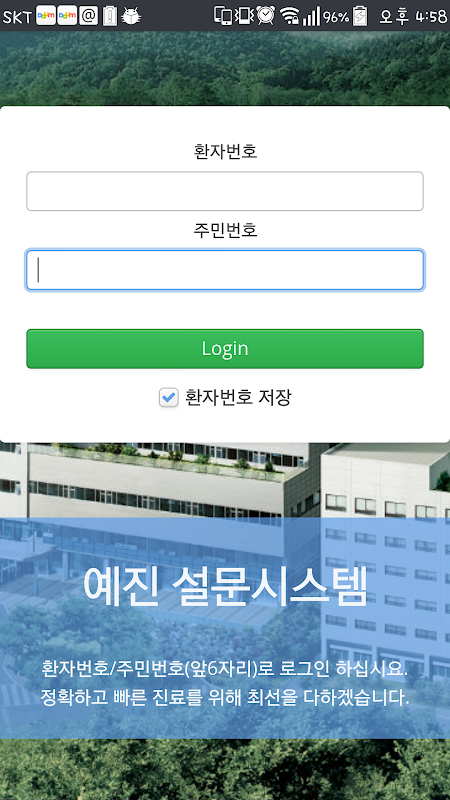울산대학교병원 모바일예진 시스템입니다. 정확하고 빠른 진료를 위해 최선을 다하겠습니다.