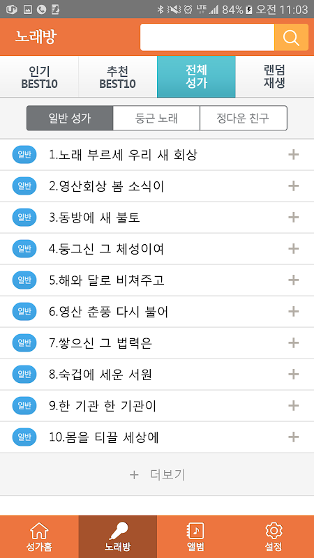 원불교 일반성가 200곡, 둥근노래 80곡, 정다운 친구 120곡 등 모든 노래를 부를 수 있습니다.
