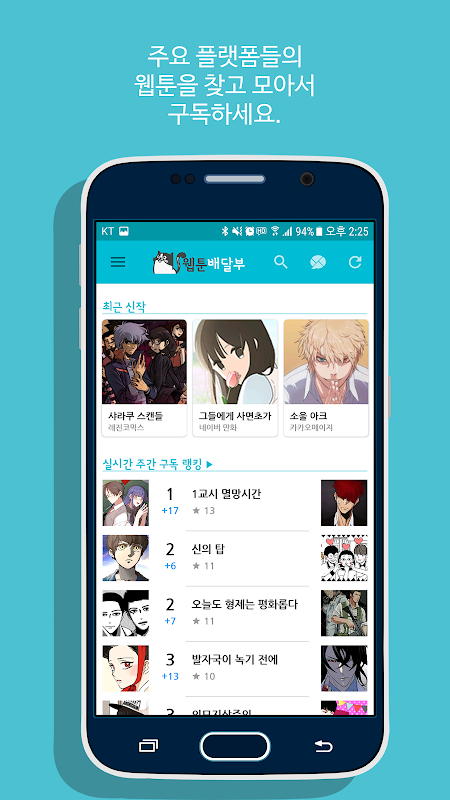 ★ 웹툰배달부는 네이웹툰, 다음웹툰 등 인기있는 무료 웹툰 만화를 매일 배달해 드리는 웹툰 만화 모음앱입니다.