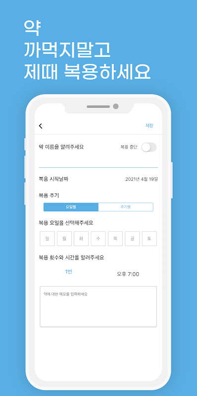 실제 약을 복용하라고 문구가 오는 것이 아닌 나만 알아볼 수 있는