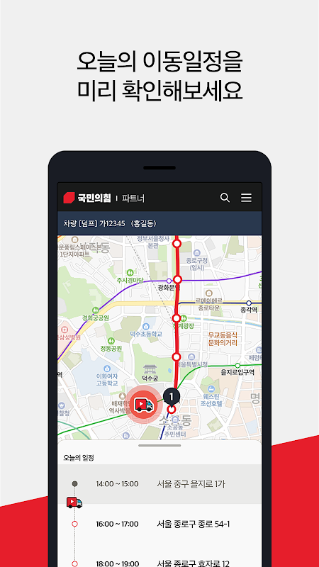 1. 간단하게 유세차 일정과 경로를 공유하세요.