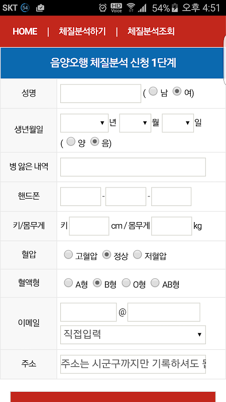 음양오행 체질분석 1.0.3