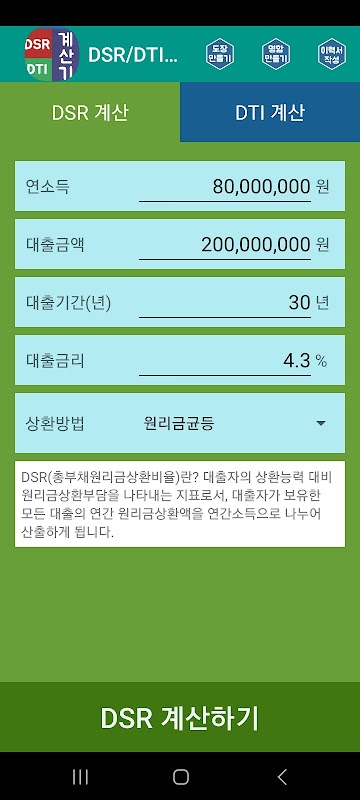 DSR계산기 DTI계산기 대출한도계산기 1.2