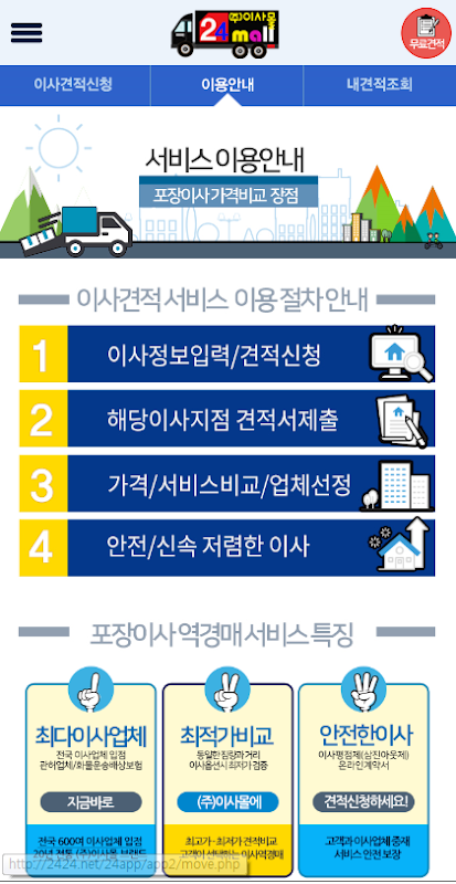 내지역 이사업체(익스프레스) 다수의 견적을 실시간으로 받아보실 수 있는 포장이사 견적비교 어플입니다.