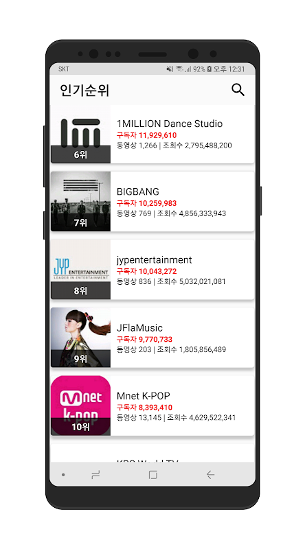 유튜브 의 크리에이터 인기순위와 수익을 알 수 있는 통계앱입니다.