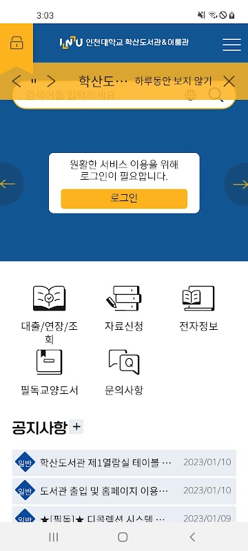 Perpustakaan Haksan Universiti Incheon Program ini menyediakan perkhidmatan perpustakaan seperti carian data, maklumat perpustakaan, pengumuman, dan tempahan tempat duduk/kemudahan.