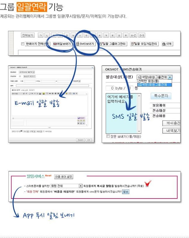 3. 관리자가 회원을 그룹별로 관리할 수 있습니다.(그룹별 문자, 이메일 발송)