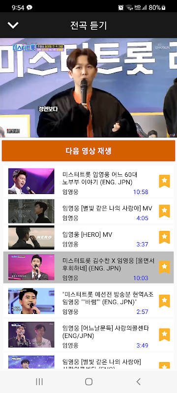 Lim Young-woong is a trot song collection application. Search for the song you want and create your own song list and enjoy it.