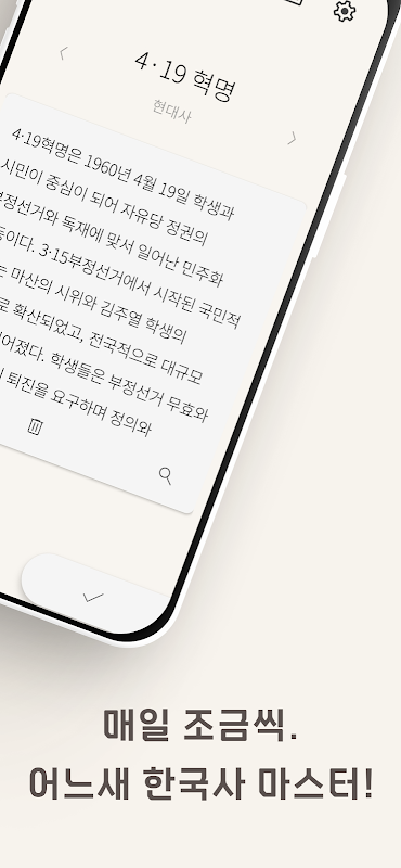 Sekarang, jadikan pembelajaran sebagai sebahagian daripada hidup anda dengan "Penghafalan Automatik Sejarah Korea." Walaupun tanpa perlu meluangkan masa istimewa, pengetahuan anda tentang sejarah Korea secara semula jadi terkumpul setiap hari.