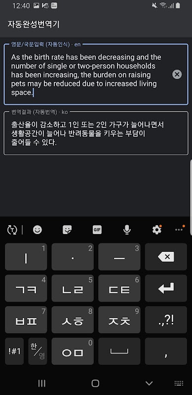 자동인식번역기 (음성번역기, 자동완성번역기) 1.2