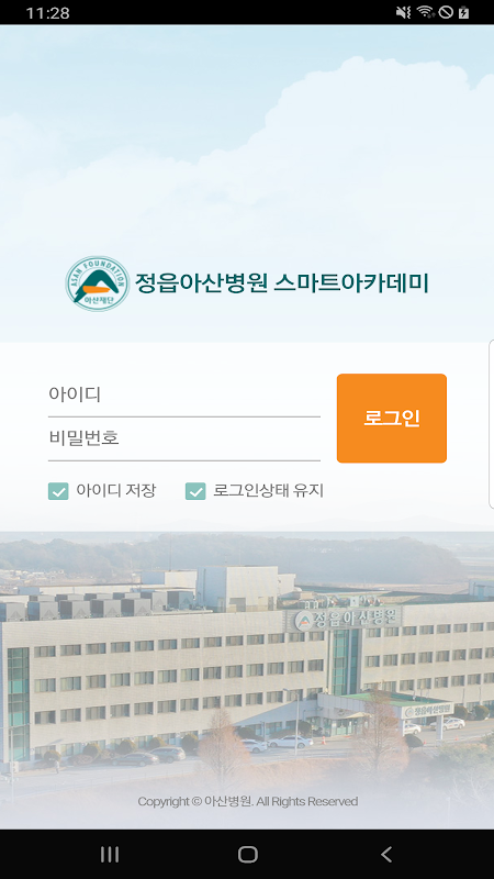 PC환경의 정읍아산병원 사이버연수원(http://jeamc.hunet.co.kr)의 아이디와 비밀번호로 로그인 가능하며, 주요 서비스를 본 모바일 앱에서도 사용하실 수 있습니다.