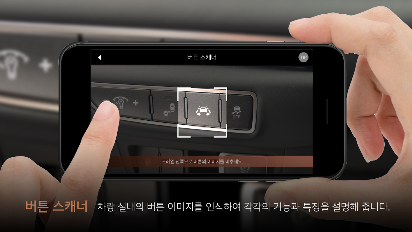 차량 실내의 버튼 이미지를 인식하여 각각의 기능과 특징을 설명해 줍니다.