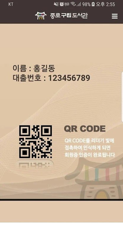 * 서비스내용: 도서검색, 모바일회원증, 도서관 안내, 전자책, 대출현황 및 이력 등