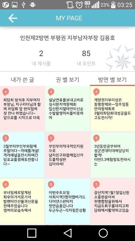 총회와 관련된 본부 공지사항을 확인할 수 있으며, 전국에서 실시하고 있는 ‘좋은친구운동’을 교류하는 SNS기능을 중점으로 이용할 수 있습니다.