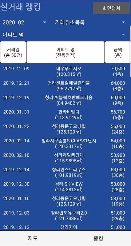 6. 아파트별 평형별 최고 거래가 목록 확인