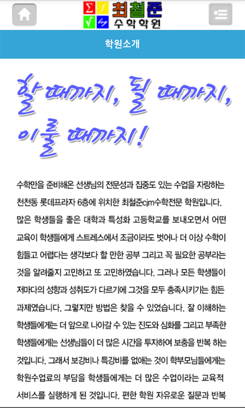 그런 학원이 되어있습니다. 앞으로 더욱 발전하는 모습으로 학생들을 변화시킬 수있는 학원으로 성장하겠습니다.
