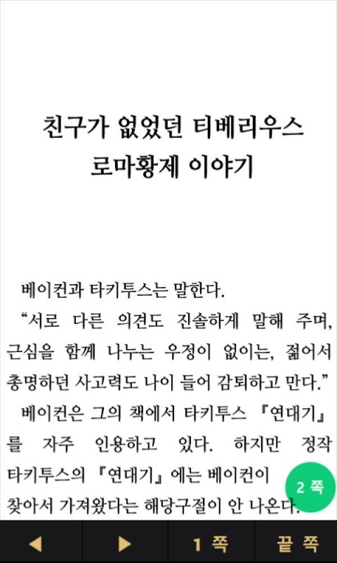 ◈ 이 앱북은 베이컨(17세기 영국철학자)의 『수상록』(에세이)에 인용되어 있는 티베리우스(고대 로마제국 2번째 황제)의 일화(숨을 거둘 때도 능청스러웠다는 내용 부분)를 읽고 생각난 것을 주관적으로 정리한 앱북입니다.