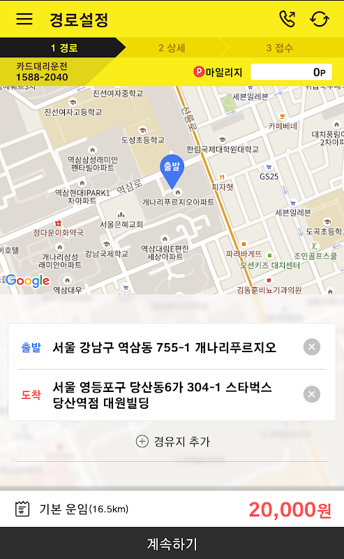 터치! 한번으로 이용 가능한 카드대리운전(1588-2040) 모바일앱