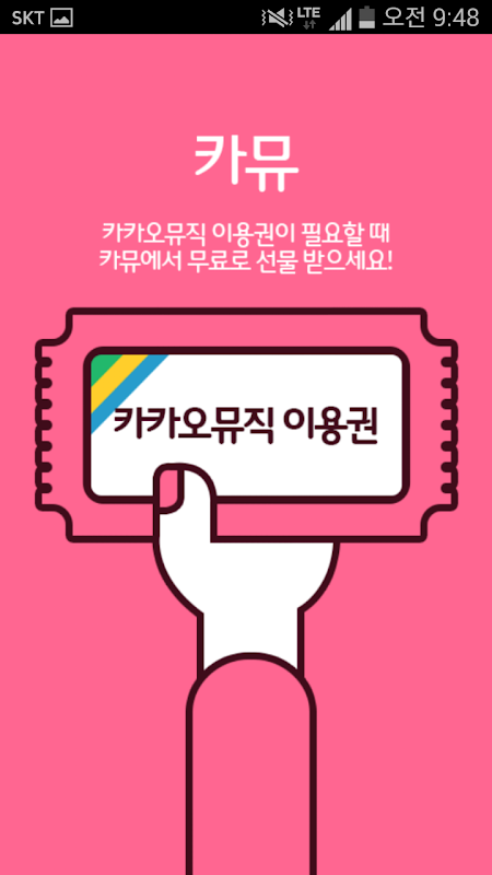 카뮤는 무료포인트를 모아서 카카오뮤직 이용권이 필요하실때 이용권과 교환할 수 있는 서비스입니다.