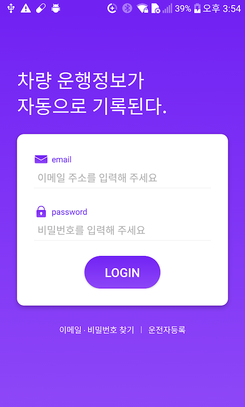** 본 앱은 운전자 등록시 소속 기업코드를 통해 등록이 가능합니다.