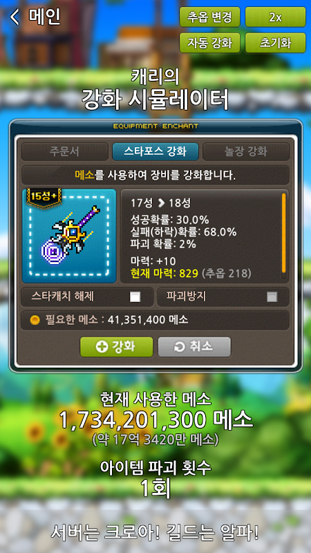 간단한 메이플 시뮬레이터 입니다.