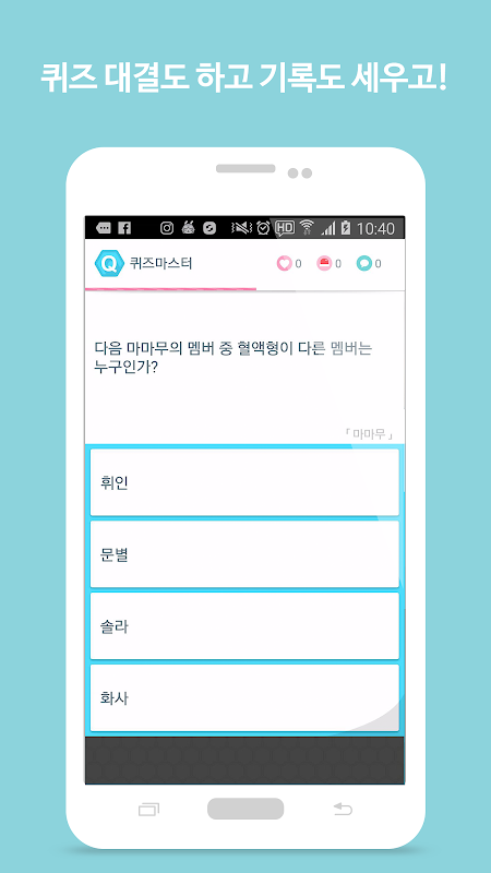 Create a quiz about Mamamoo solve social confrontation and quiz app to deokjil