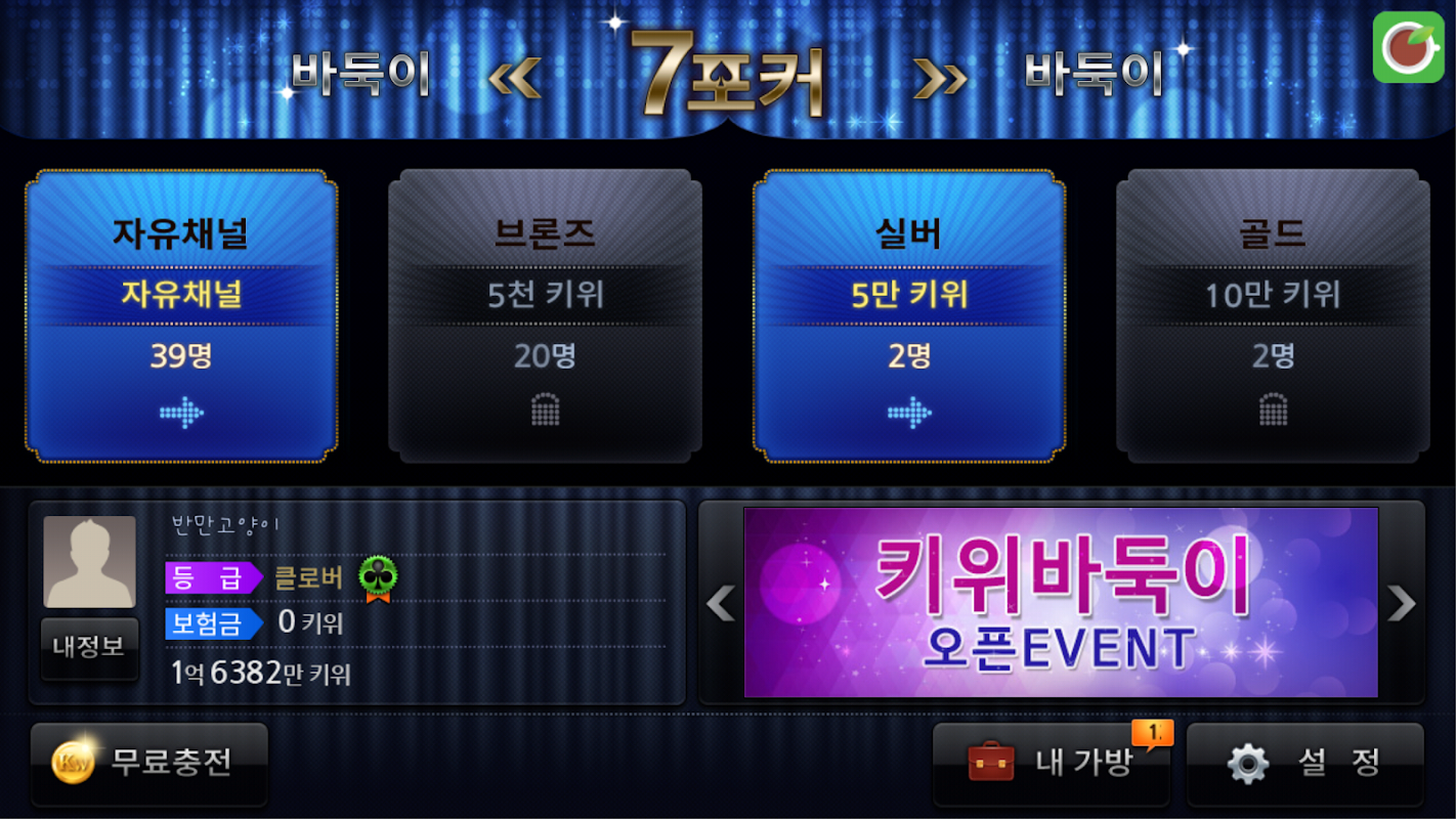 즐거운 모바일 포커게임 키위 '7포커 & 바둑이'