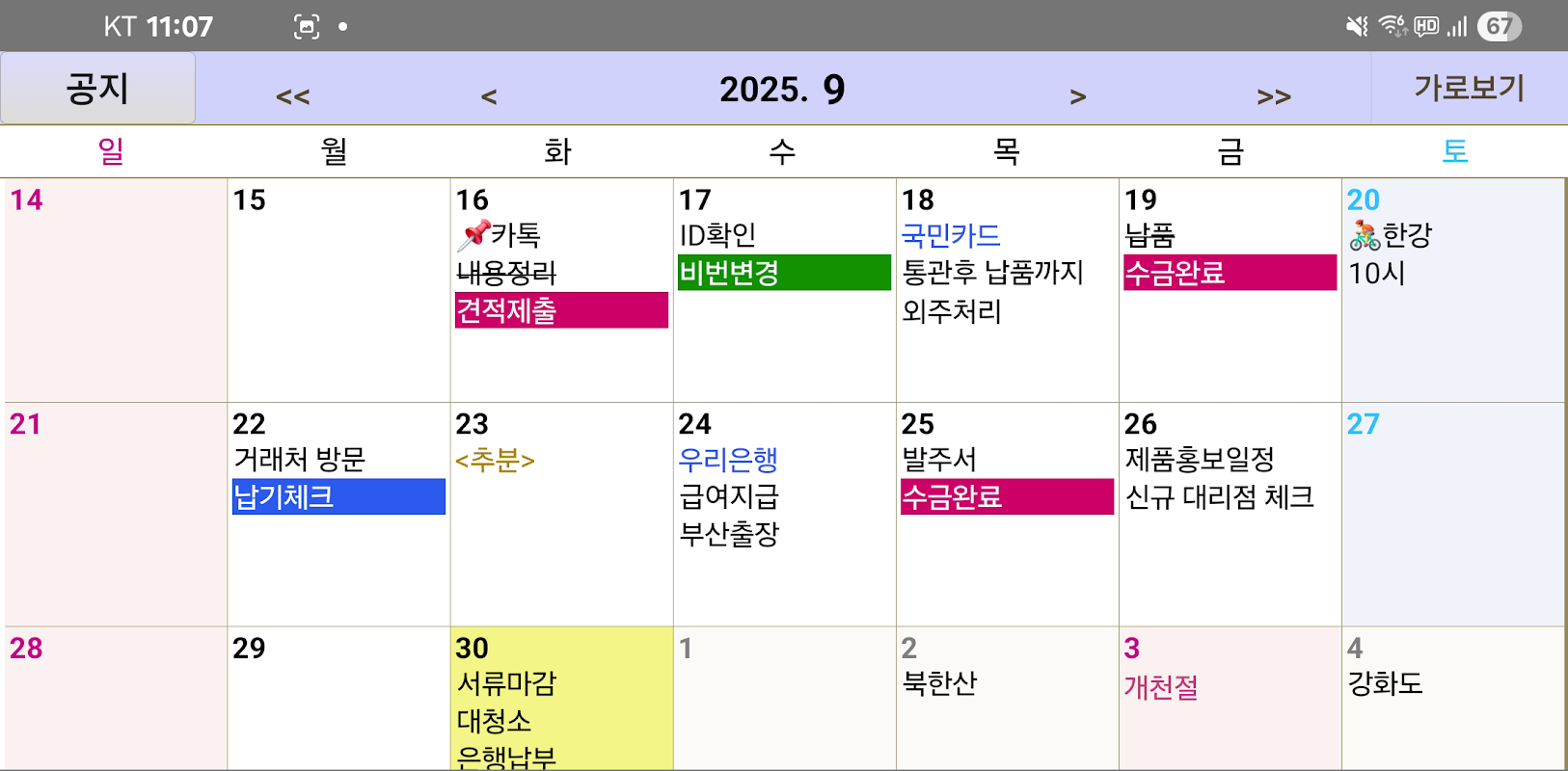 - Lihat jadual bulanan dalam mod landskap