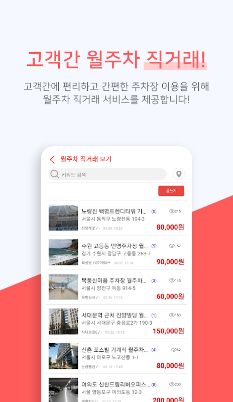 - 월주차직거래 서비스 오픈 : 125여개 거래 중~