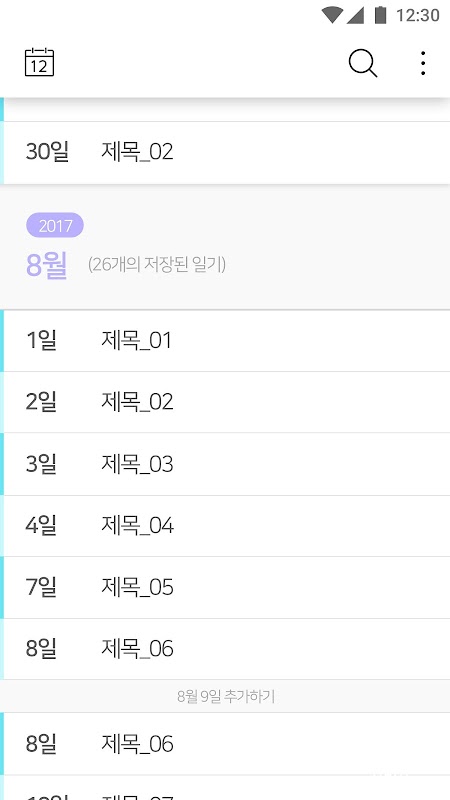 리스트 화면에서 달력 버튼을 누르면 달력 뷰로 전환됩니다.